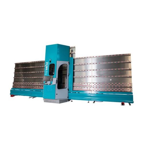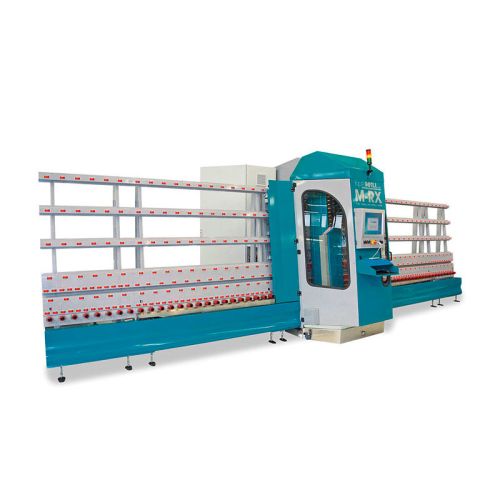 The M-RX machine is a fully digital, vertical CNC machine for drilling and countersinking on both sides, but also for milling and grinding cut-outs in flat glass.