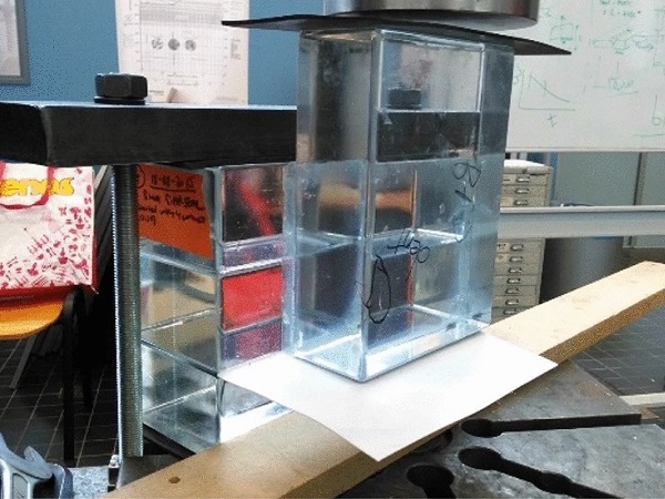 Compared to the UV-curing acrylate, the chosen Araldite epoxy, despite exhibiting an unusually large gap-filling capability, involved many practical challenges linked to its applicability, including a lack of transparency and of controllable flow of the adhesive due its prolonged setting time that lead to excessive overflow even with the use of spacers (Fig. 7, top). In comparison, the photo-catalytic curing of the selected acrylate allowed for a fast, controllable construction: Delo Photbond 4468 can be fully cured, attaining its full structural capacity and becoming moisture- and water- resistant, in a minimum of 40 s using 60 mW/cm2 UVA intensity (Delo Industrial Adhesives 2014).