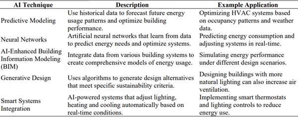 Table 2 AI Techniques for Energy-Efficient Building Design