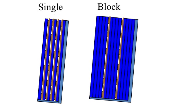 These small blocks should be put on both sides of the central metal bar in such a way that the air channel would be app. 3 times larger (higher) then the actual block and that blocks at the opposite side of the metal bar should be in the middle of the air gap of the opposite side.