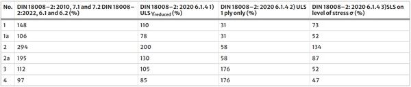 Looking at the results one can see, that already 1st step according Sect. 6.1.4 1) reduces the utilization remarkably, especially for formats lines 1 to 2a with high IGU-related climatic loads. It is obvious, that also for these combinations, the 2nd step assuming breakage of all thinner panels according to Sect. 6.1.4 2) has the largest effect. For formats with lower IGU-related “climatic loads” (see lines 3 and 4) this 2nd step makes no sense, effect of double or triple IGU can be seen. Lines 1a and 2a show, that it often does make sense, to look at real height difference ΔH from production to installation instead of taking the standard values from the code, this can remarkably reduce such permanent loads.