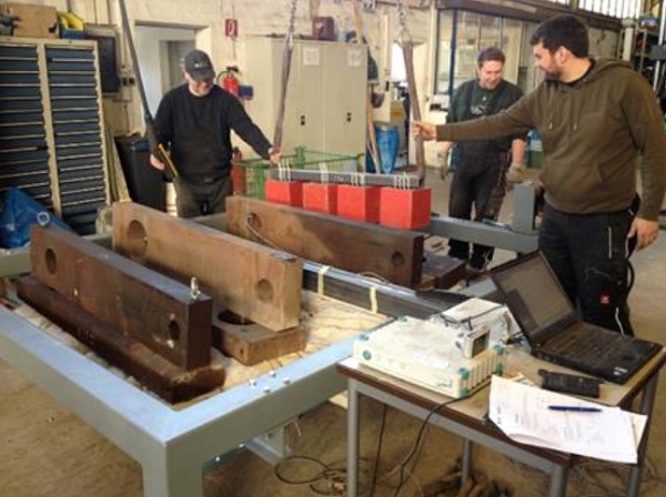 In addition to the test assembly and adhesion testing, load/strength tests were carried out at the Laboratory for Steel and Lightweight Metal Construction of Munich University and Applied Sciences in Munich, Germany. The Figures 3 and 4 below show some of the test procedures done on the larger size panel.