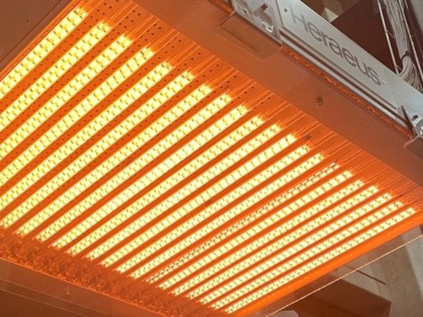 The radiant panel features densely arranged infrared emitters, each comprising a thin tungsten filament encased within a protective quartz glass tube. The rear surface of the glass tube is covered with a reflective quartz coating, efficiently redirecting all the radiation to the front of the panel. An illustration of the radiant panel and its emitters is presented in Figure 2(a), with a detailed illustration of the emitters provided in Figure 2(b).