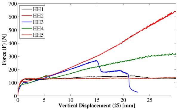 (iii) Failure phase - beyond displacements of 2δ = 3 mm the response varies between specimens. This has been noted previously by Ferretti [14].