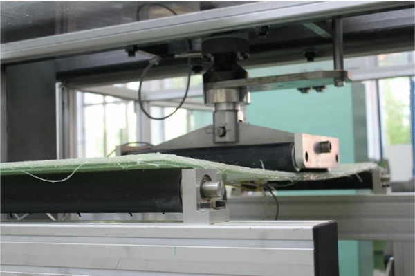 In theory, the various fibre reinforcements have different advantages. The quadrax scrim consistently delivered the best results. However, the price-performance ratio of the fibre mat was convincing. For the four-point bending test, 5 mm thick glass panels were used, resulting in a FRP thickness of 10 mm. The following two different laminate build-ups were developed: