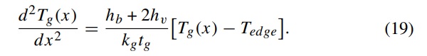 As has been previously shown (Simko et al. 1995), this analysis generates two coupled second order differential equations involving the temperatures of each glass sheet. In general, these equations cannot be separated and must be solved numerically. However, in the symmetric case considered here, the equations decouple, and can be solved analytically. For the hot glass sheet, the equation is: