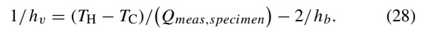 Taking differentials and using Eqs. (21) and (27), to first order we obtain the proportional error Δhv/hv in the measured thermal conductance of the specimen: