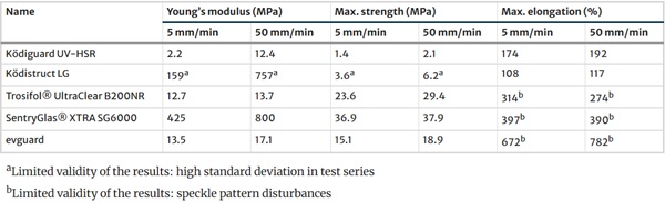 Table 3 Tension test data of investigated interlayer materials - Full size table