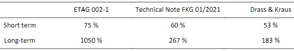 The strength of the adhesive joint is highly dependent on the duration of exposure. This is because the polymeric structure of adhesives has a strong creep tendency. As a result, a permanent load is usually the more critical load for adhesive joints and additional safety factors must be applied. In the following, two other dimensioning methods are compared with the ETAG 002-1 method in order to gain a better understanding of the use of the bond.