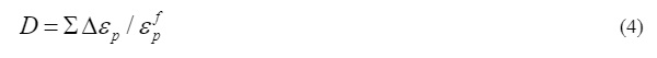 where Δεp is the plastic strain during a cycle of integration, and εpf is the plastic strain at complete fracture under constant pressure, P, given as:
