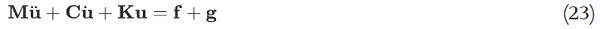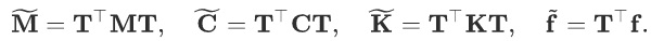 where M, C and K are the ñ×ñ mass, damping and stiffness matrix, u is the ñ×1 displacement vector, f is the ñ×1 external force vector and g is a ñ×1 interface force vector, which is included due to the presence of MPCs. Now, inserting the transformation according to Eq. (22) in Eq. (23) and pre-multiplying with L⊤ yields: