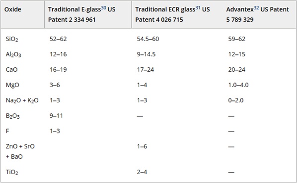 TABLE 1. Oxide weight percent comparison of traditional E-glass versus Advantex.