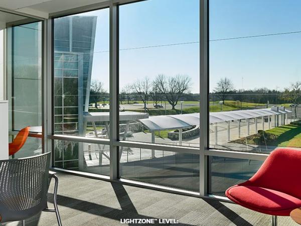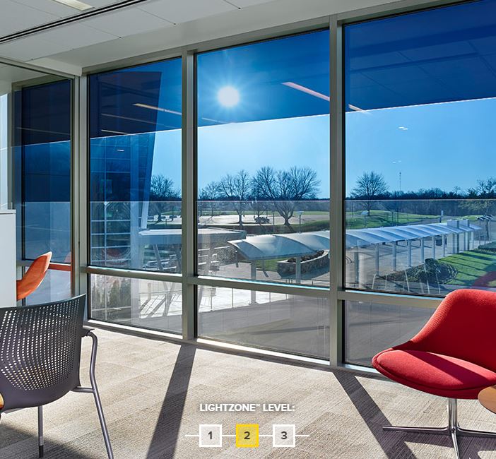 For instance, electrochromic is an active glass technology that utilizes a low voltage wire solution with integrated sensors to detect the trajectory of the sun in conjunction with software and hardware programming to change the state of the glass, or glass zones, to maintain an environmentally friendly (cool) climate within a building. It still allows the necessary VLT of the building to ensure energy efficiency as well, so natural daylight can reduce electricity reliant sources.