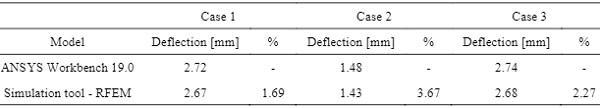 Table 2: Maximum out-of-plane deflection on the inner pane. Flat rectangular model.