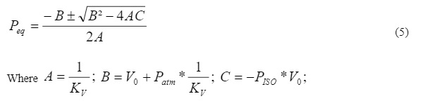 Equation 2 can be converted into a quadratic equation, and equilibrium pressure Peq solved.