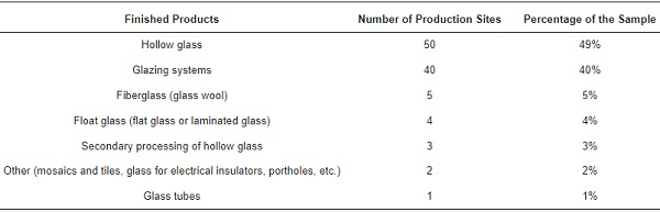 Table 1. Type of finished products produced by 103 Italian glass-production sites.