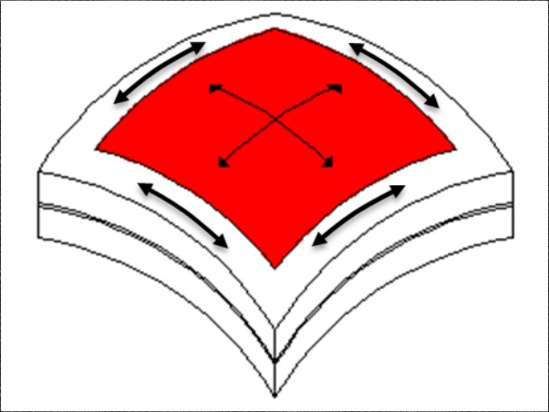 For a VIG with an un-supported edge condition, the stresses remote from the edge seal over the outer surfaces of the hot side (surface 4) and cold side (surface 1) are found to be isotropic and of the same magnitude, but are tensile and compressive, respectively [1,6,7,9]. Closer to the edges of the glass panes, the stresses over the glass surfaces are anisotropic.