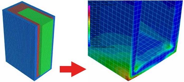 To model and predict stresses within flexible joint, non-linear solid modelling was carried out using Mooney-Rivlin behavior model and stress strain curve tabulated data based on information from silicone manufacturer. Adopted model has shown silicone behaving within allowable stress range, see fig. 14 on the right side.