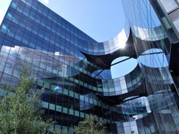| Previously, toughened safety glass; now, laminated safety glass: A cost-efficient new facade at the Fraunhofer headquarters in Munich was made possible by using laminated safety glass made with strong, stiff DuPont™ SentryGlas® interlayer, allowing re-use of the existing support structure.