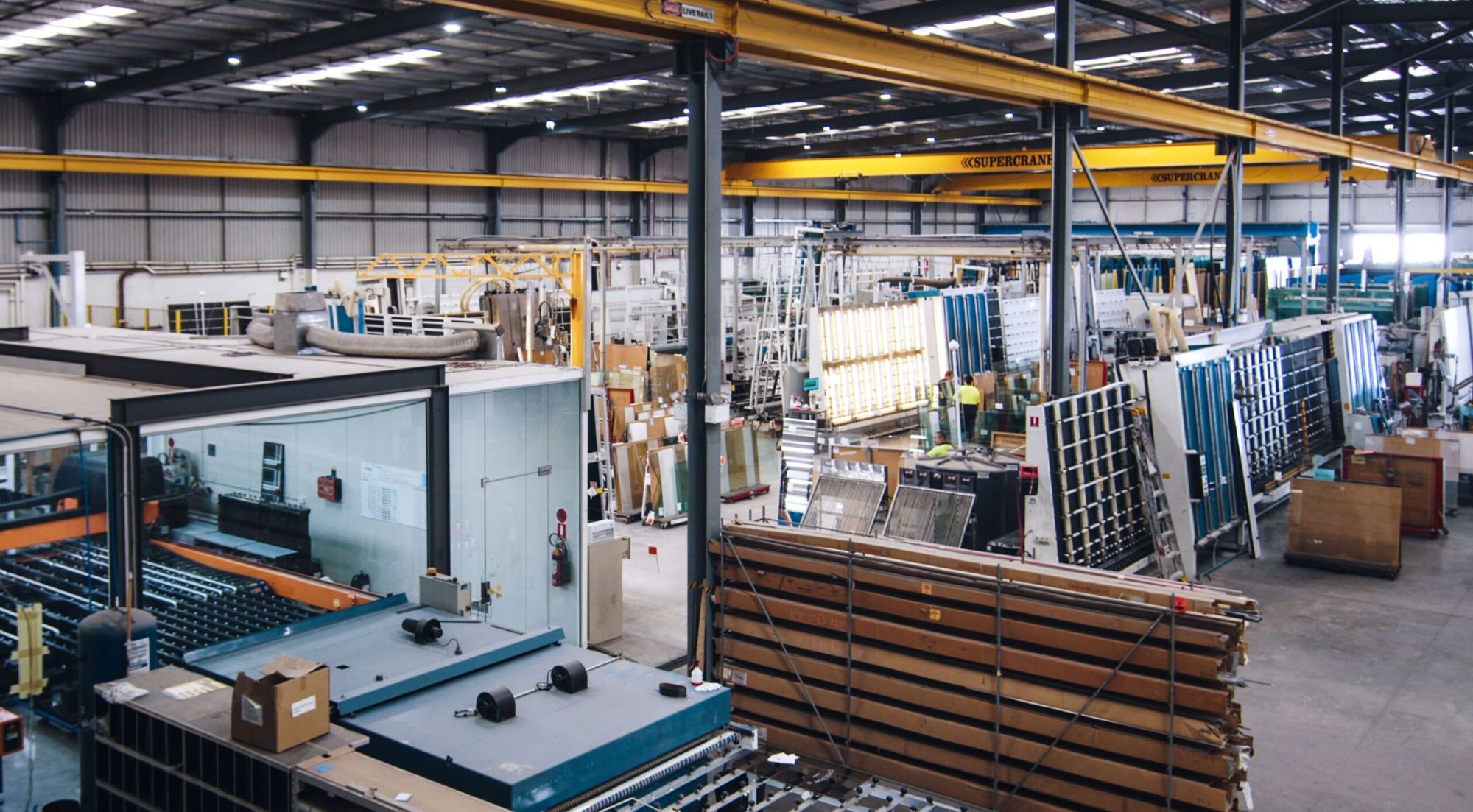By 2004, the original plant had already doubled in size, and with it came a new tempering furnace, CNC machines, and cutting benches for laminated glass.