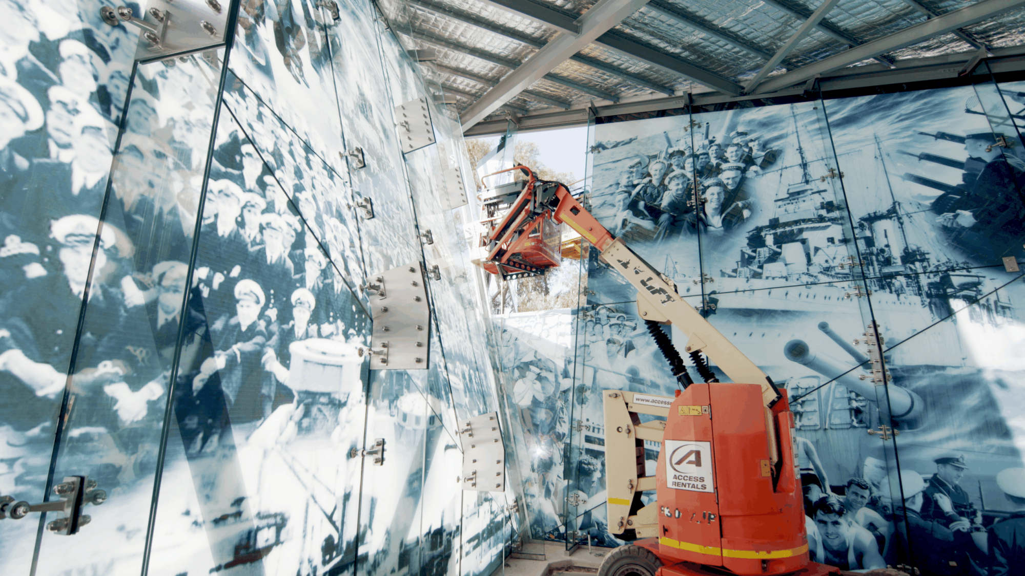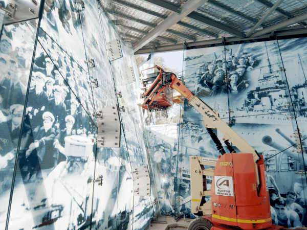 Among the many successful projects carried out, we must certainly mention the HMAS Perth memorial, which stands out for its size and importance. It is an extraordinary installation in the shape of a ship’s bow: the project, which required years of planning and close collaboration with other external stake holders, tested all of Cooling Brothers’ skills and capabilities from artistic design to complex lamination and digital printing. This project inaugurated in the spring of 2025, was not only an opportunity to demonstrate the capabilities of FOREL technology but also the craftsmanship and expertise of the Cooling Brothers team. Glass is the protagonist, a canvas for visual narration, merging battle scenes with crew portraits to emotionally connect visitors with the ship’s history. The result is a historic glass tribute that embodies respect, resilience, and national honor.