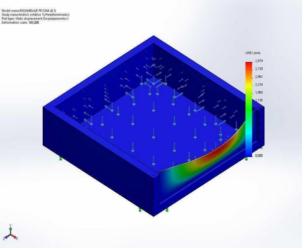 Faithful to EVALAM's motto " no limits in glass creation", the Technical Architectural Department considers each project independently, regardless of the shape, design or measurements. This differential service works to find the most appropriate solution, offering the justifying calculation of the glass compositions and guaranteeing their suitability for service. Based on the tests carried out to determine the mechanical properties offered by the company's products (Evalam Visual, Evalam N-Fluent & AB-AR), it is possible to simulate the stresses to which the glass is subjected in each of the applications defined by the customer and thus be able to advise on the best glass composition to manufacture. The client receives a detailed and personalized report with the results of the static analysis, carried out using finite element analysys software (FEA), where the stresses, deformations and safety factor resulting from the study generated by the efforts contemplated in it are observed. From the analysis of each of the layers that make up the final glass, it is verified that the thicknesses meet the requirements established by the client, providing the optimal solution for their application. In short, it is about guaranteeing the safety of the project with a correct dimensioning of the glass thicknesses that allows an optimal cost-safety ratio.