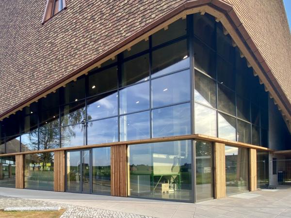 Following the philosophy of the natural food manufacturer, the architecture is also based on circular principles, such as the use of regional and energy-efficient building materials. While the wide roof overhang made of Swiss clay tiles ensures a pleasant room temperature without mechanical air conditioning in the summer months, our triple insulating glass SILVERSTAR EN2plus helps to optimize thermal insulation in winter. As a color-neutral glass with low light reflection, a clear view is made possible - entirely in the spirit of architecture that connects with nature.
