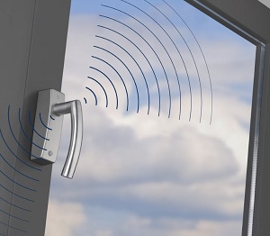 When integrated in a building’s central locking system, they work as follows: a wireless signal is sent to the system if a handle is moved, informing the system what position this handle is in.