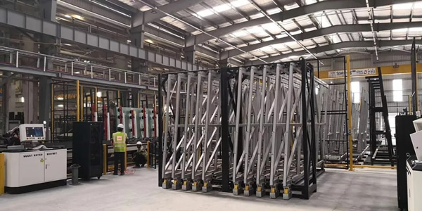 The pretreatment line is equipped with a shuttle glass storage system, a cutting machine, two grinding lines and the gMES system independently developed by NorthGlass. The application of this pretreatment line not only helps the customer greatly improve the production efficiency, effectively reduces the difficulty of management, but also saves the labor costs.