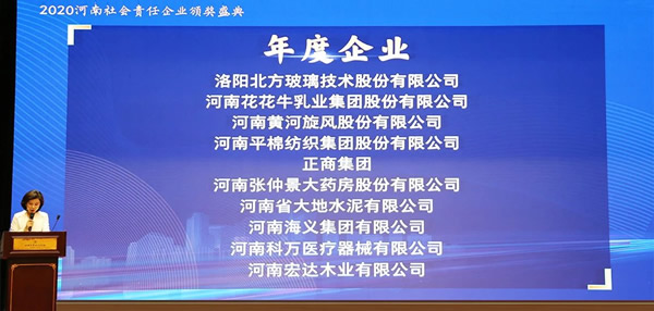 On May 21st, the award ceremony of “2020 Henan Social Responsibility Enterprise” and “2020 Outstanding Social Responsibility Contribution Entrepreneur”, jointly sponsored by Henan Daily, State owned assets supervision and Administration Commission of Henan Provincial People's Government, the Provincial Federation of Industry and Commerce, was held grandly in Zhengzhou.