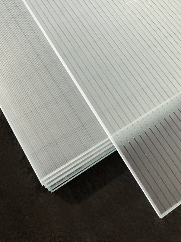 The collection, which supplements the DecorFlou Design family of glass, includes nine separate patterns, each one developed in a transparent version and in a more block coloured satin finish, thereby expanding the usage possibilities in interior design projects. Devised - in their translucent version - to accommodate the need to separate indoor spaces in the hotel industry and - in the matt version - for use in furniture, the variety of finishes fosters an extensive range of glass applications, guaranteeing flexibility and adaptability to various market needs.