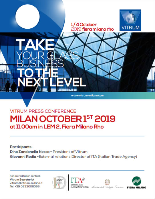 The official trade show opening ceremony will be held Tuesday, October 1st in the LEM2 room at Fiera Rho-Milano, with the participation of Vitrum President Dino Zandonella Necca and Giovanni Rodia, Director of External Relations for ITA (Italian Trade Agency).