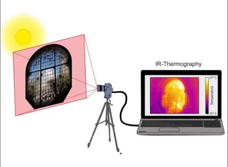 This work presents the results of the evaluation of two Art Nouveau glass windows from the Casa-Museu Dr. Anastácio Gonçalves (Lisbon, Portugal) with IR-thermography during the summer solstice.